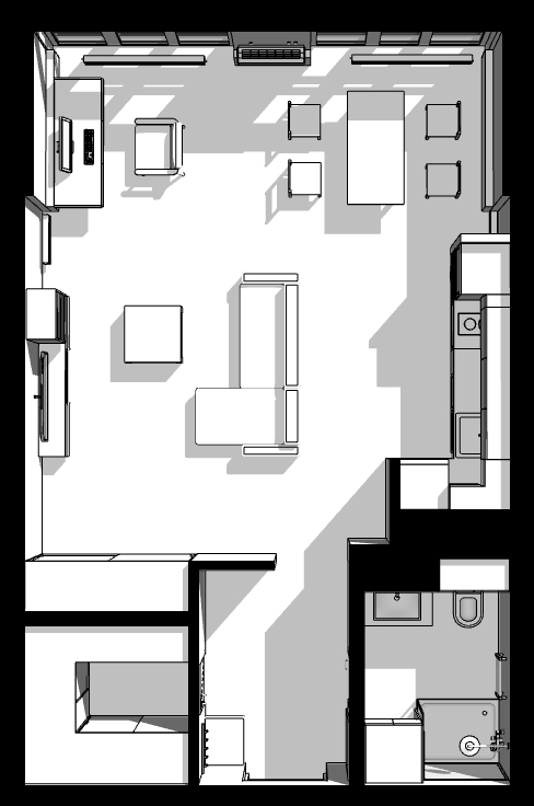 Для холостяка, который ценит стиль и удобство, данное жилье станет идеальным выбором. Брутальные тёмные тона, использованные в дизайне, придают квартире мужественность и сдержанность. Одновременно с этим, классические элементы декора добавляют квартире элегантности и изысканности.